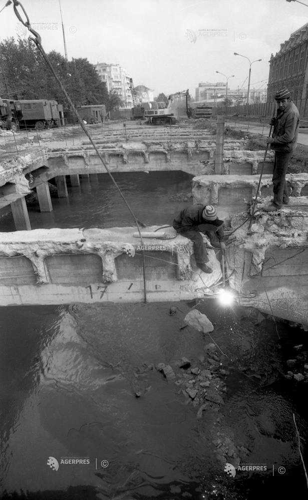 Pe vremea regimului comunist, planșeul avea să fie scos, albia reamenajată și a fost construit Lacul Morii. În partea dreaptă a imaginii se poate vedea Palatul de Justiţie. În schimb, Hala Unirii şi Spitalul Brâncovenesc fuseseră deja demolate.