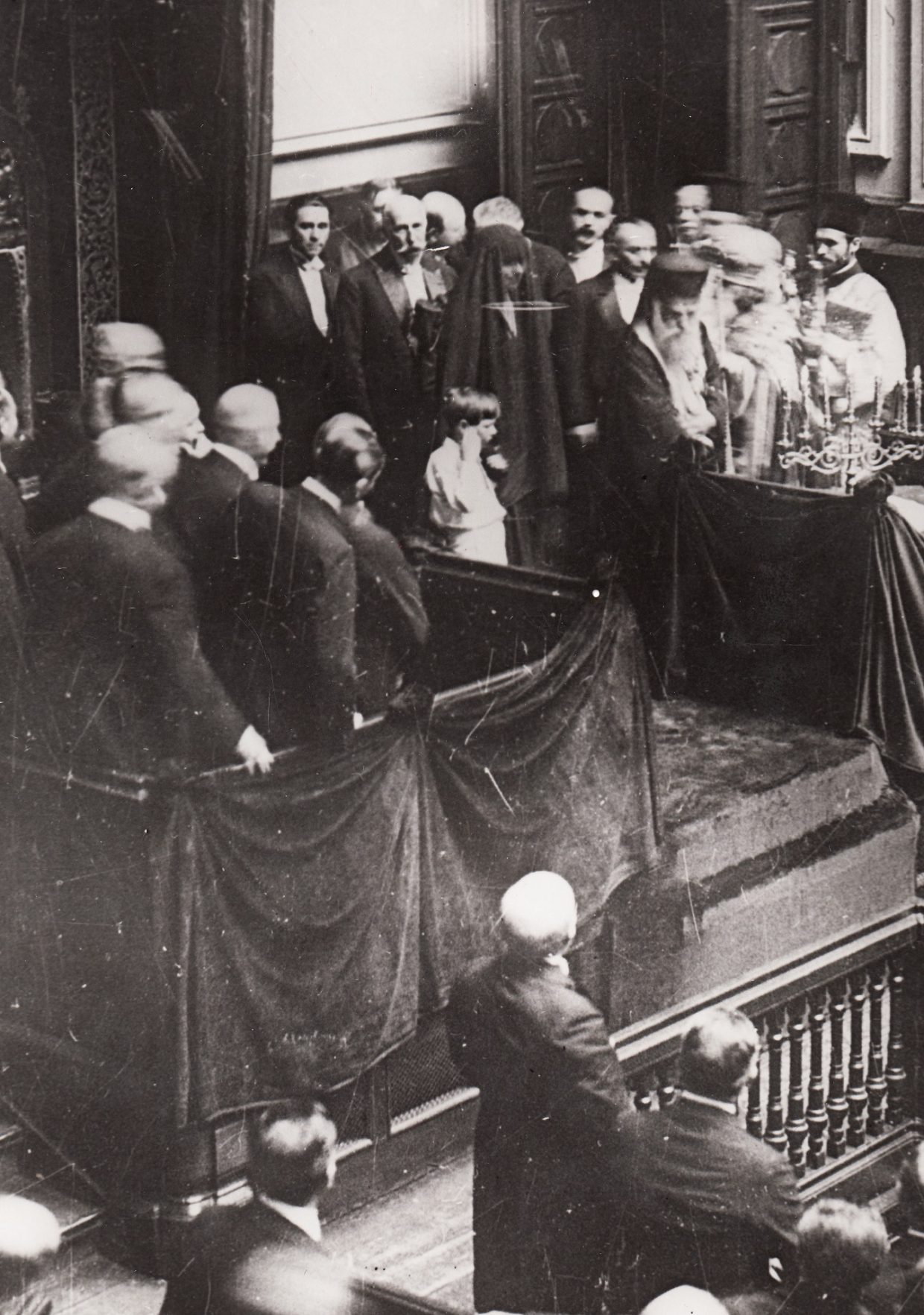 Deschiderea Parlamentului, după decesul Regelui Ferdinand. La tribună: principele Nicolae, patriarhul Miron Cristea, Gheorghe Buzdugan – membri ai Regenţei. În plan secund se află Regele Mihai I. Începutul primei domnii a Regelui Mihai (1927-1930).