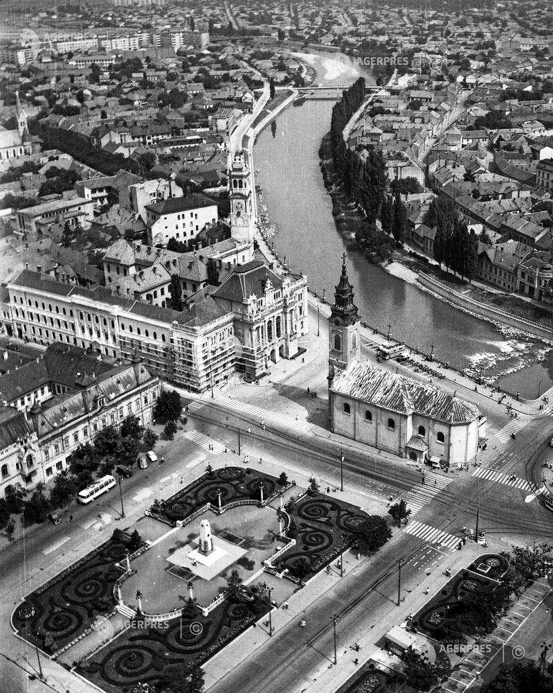 Municipiul Oradea, cu râul Criş, vedere din avion, 22 iulie 1964.