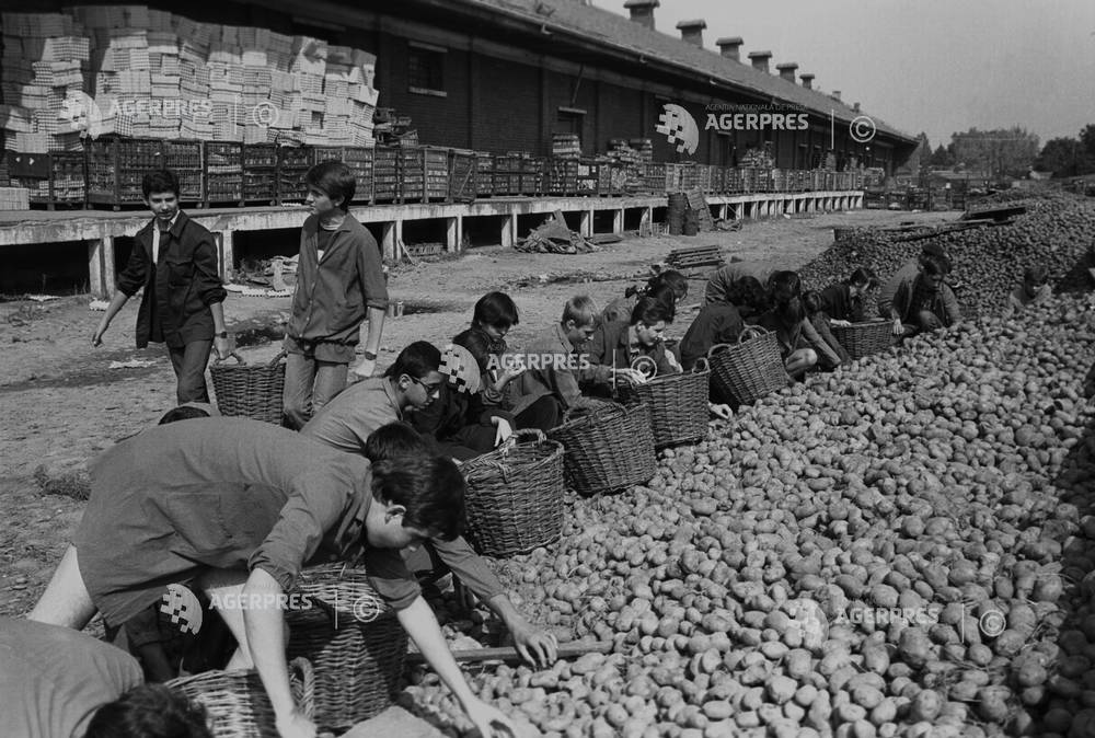 Practică a elevilor la sortatul cartofilor, 26 septembrie 1982