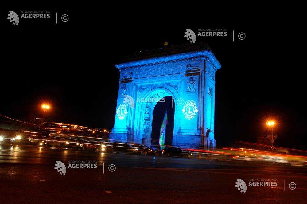 Iluminarea Arcului de Triumf în lumină albastră, de Ziua Mondială a Diabetului.