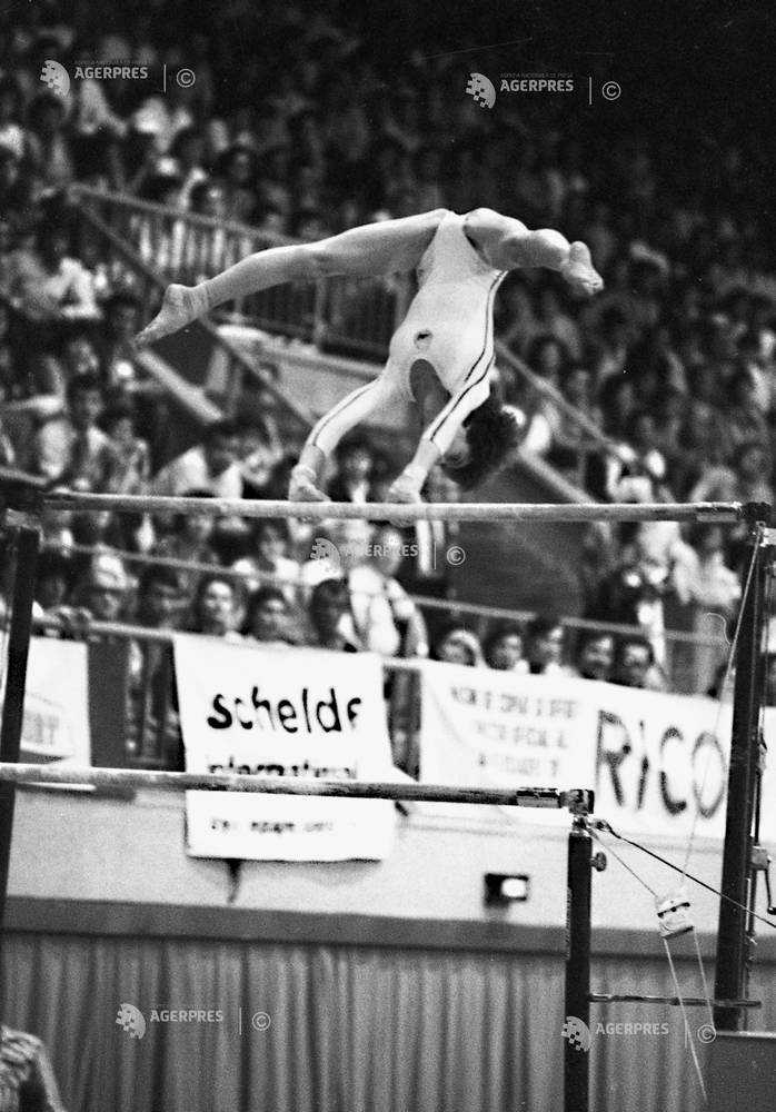 Universiada Bucureşti (19 – 30 iulie 1981); Nadia Comăneci evoluând la paralele.