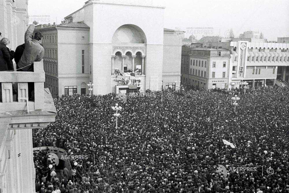 21 decembrie – Pentru a şasea zi consecutiv, au loc manifestaţii. Muncitorii părăsesc lucrul şi se îndreaptă spre Piaţa Operei, unde se adună zeci de mii de oameni. Se constituie Frontul Democratic Român din Timişoara, care difuzează o ”Declaraţie – Program”.