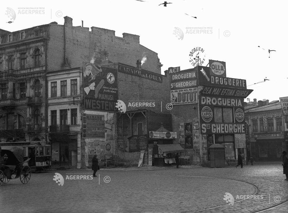 Piaţa Sf. Gheorghe din Bucureşti, important vad comercial al Capitalei. (placă fotografică)