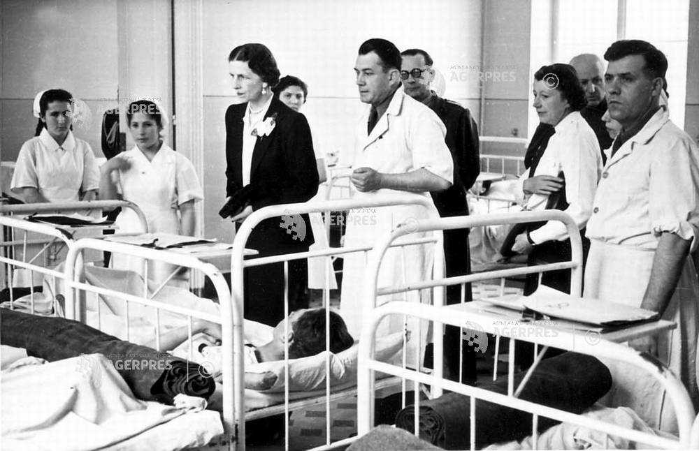 Regina Mamă Elena vizitând răniţii, la Spitalul Militar, 11 septembrie 1944.